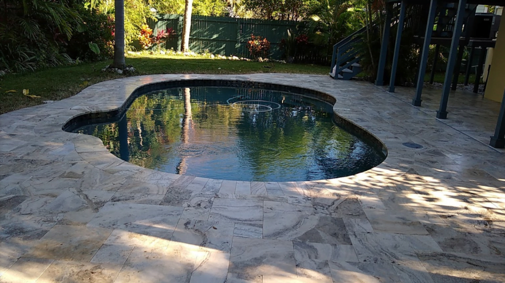 • Safety Coping: Replace jagged or loose edges with smooth travertine that stays cool under the July sun.